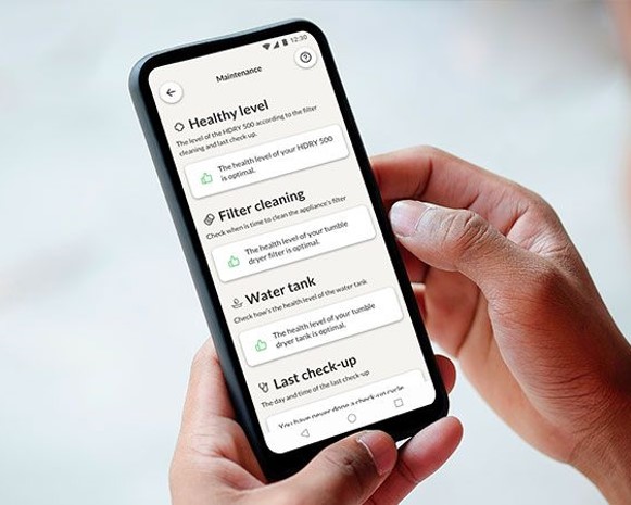 عبر تطبيق hOn يمكن للمستخدم متابعة الاشعارات في حال الحاجة للصيانة وكذلك يساعد التطبيق المستخدم حل بعض المشاكل دون الاتصال بمركز الصيانة